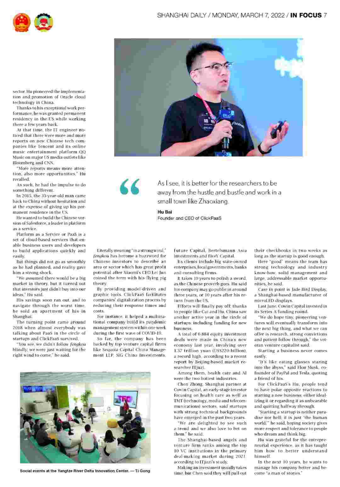 在正在进行的两会上,,,,,,,,,,,高质量增长和乡村振兴是国家立法者和政治顾问的热门话题,,,,,,,,,,而长三角地区的发展已成为这方面的指南。。。。。。。在上海市青浦区赵巷小镇,,,,,,,,,,,,,地处长三角中心地带,,,,,,,,,,,,良好的自然环境和创业环境吸引了众多有志创业者。。。。。。。。。。